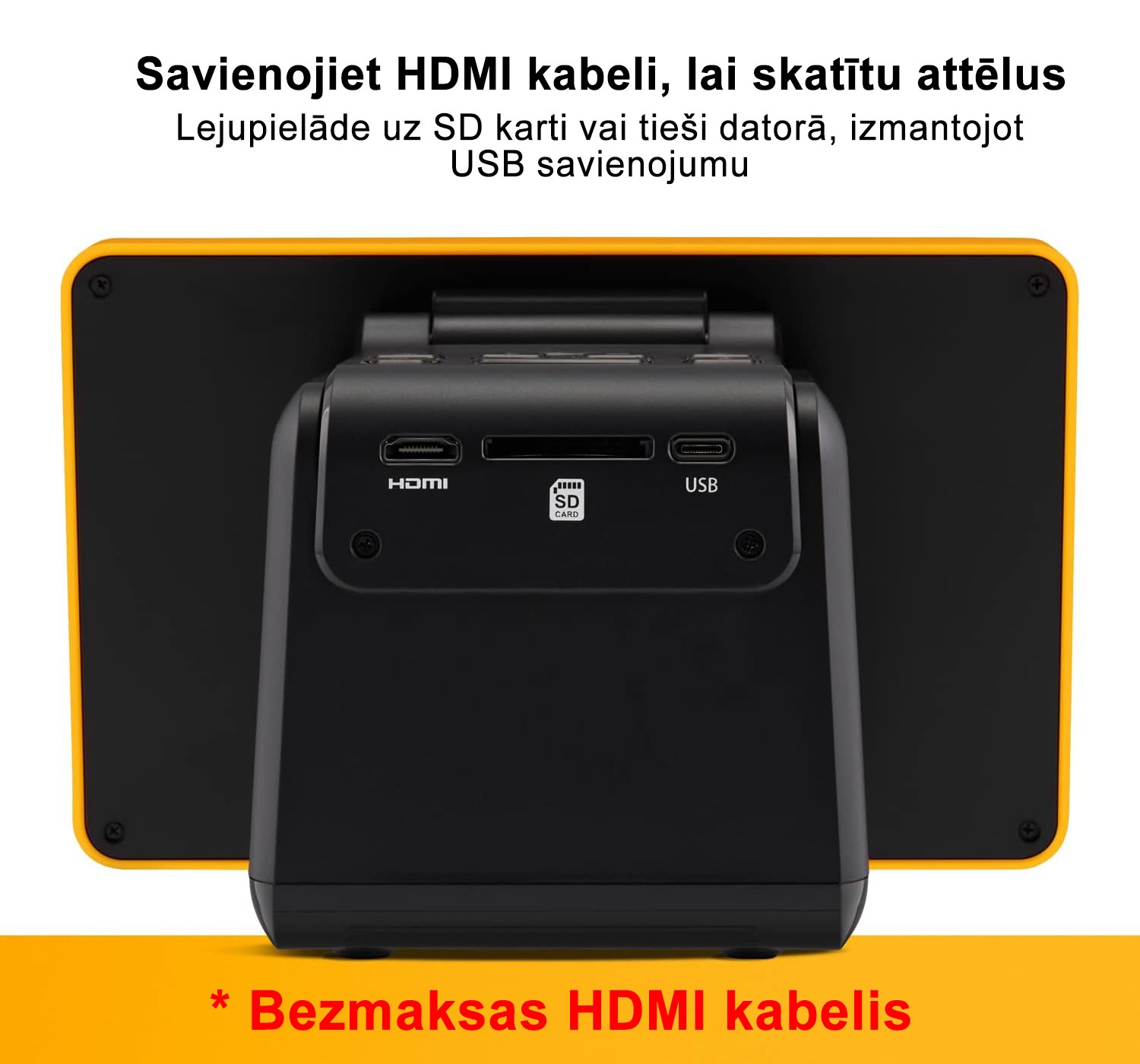 Īpaši augsta izšķirtspēja: skenējiet un saglabājiet attēlus līdz 24 megapikseļiem (lai iegūtu asākas detaļas) tieši SD kartē, pēc tam viegli pārsūtiet attēlus uz datoru, izmantojot komplektā iekļauto USB kabeli.